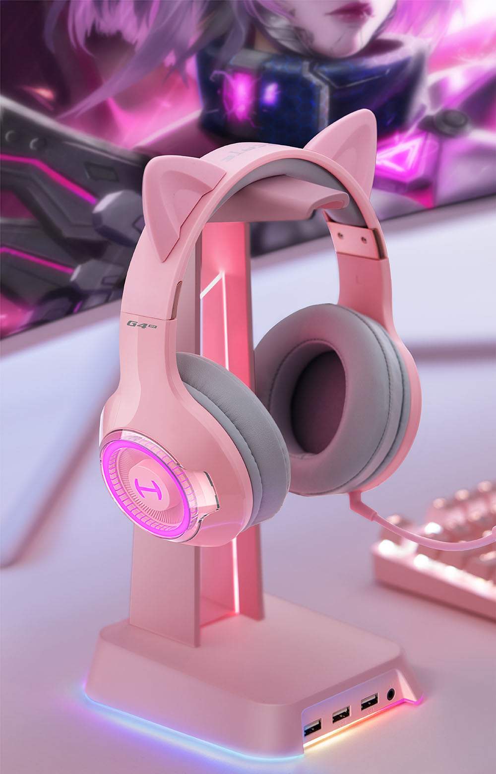 RGB lighting effects to match the trendy cat-ear design.