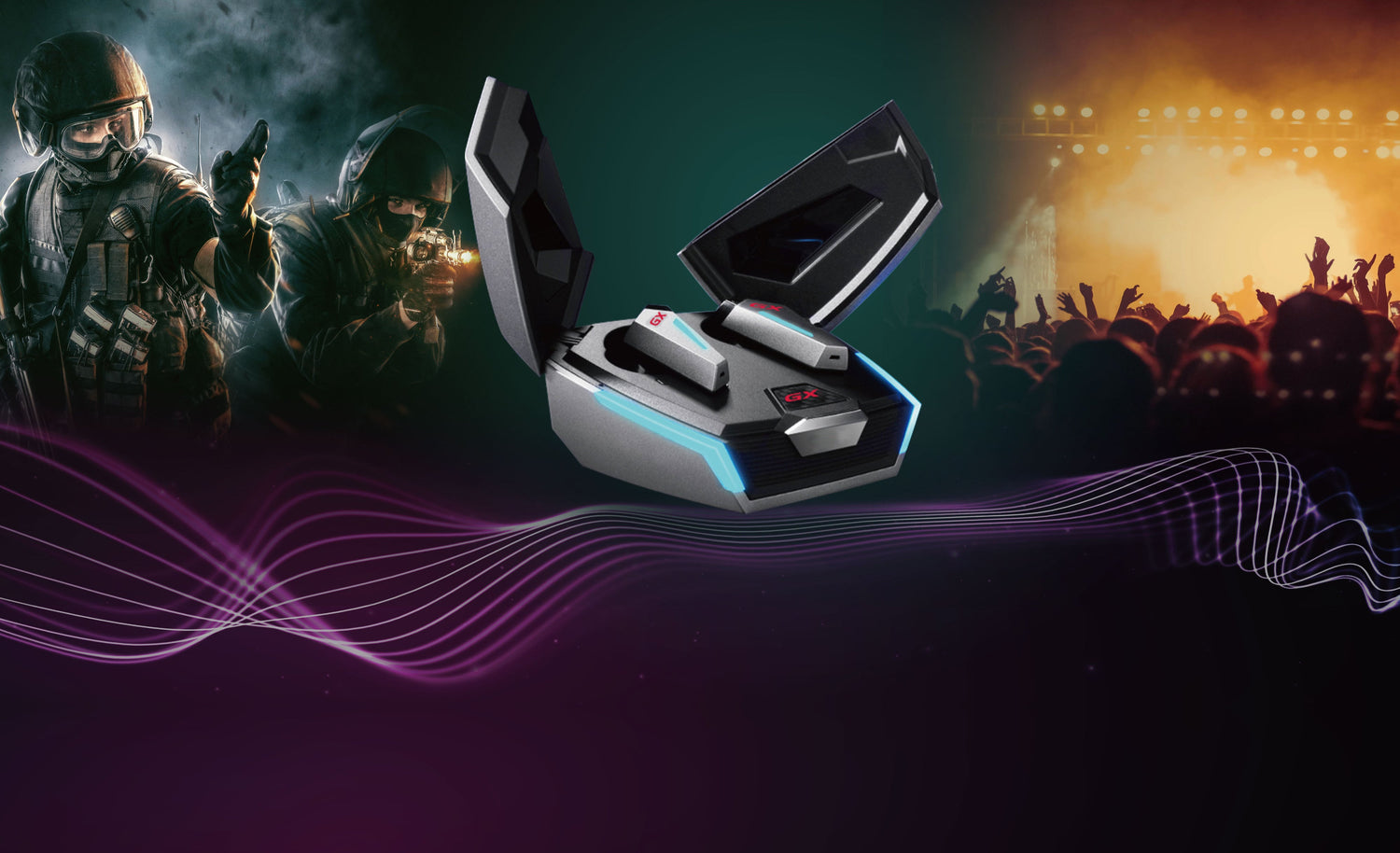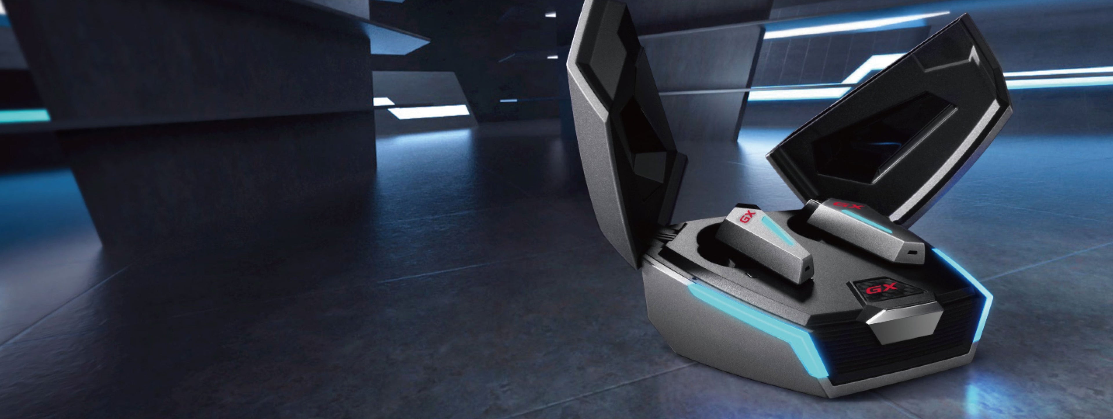 Adopts poison fang design incorporating RGB colourful breathing lighting, the GX07 delivers the soul of a cyberpunk. The design of the GX07 charging case is inspired by the wing doors of the super GT. When you open the charging case, the RGB light will turn on automatically and alternately to attract everyone's attention.
