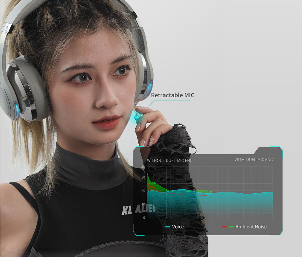 The dual MIC array accurately picks up the speaker's voice and ensures that the main direction of the target voice is clear. Effectively resists 90% of ambient noise and features full-coverage earcups and a retractable MIC for smooth gaming communication.