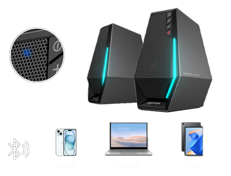 Click the power/mode switch button to enter "Bluetooth mode", and start the Bluetooth scanning of the device. Pair HECATE G1500 with smart devices that support Bluetooth, such as mobile phones and tablets.