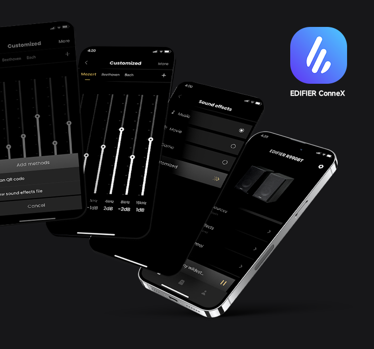 Three preset sound effects are optional through the EDIFIER Connex App for music, movies, and gaming. With the app, you can also customize your own sound effects to suit your unique preferences.