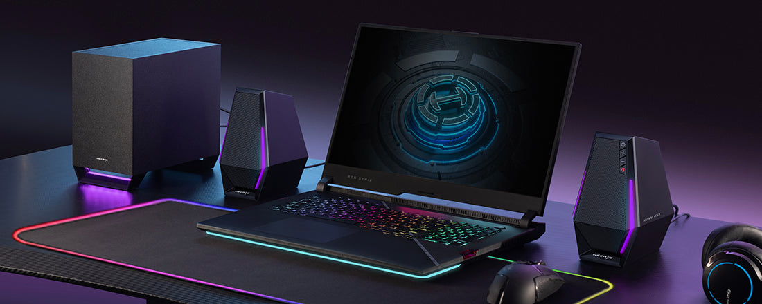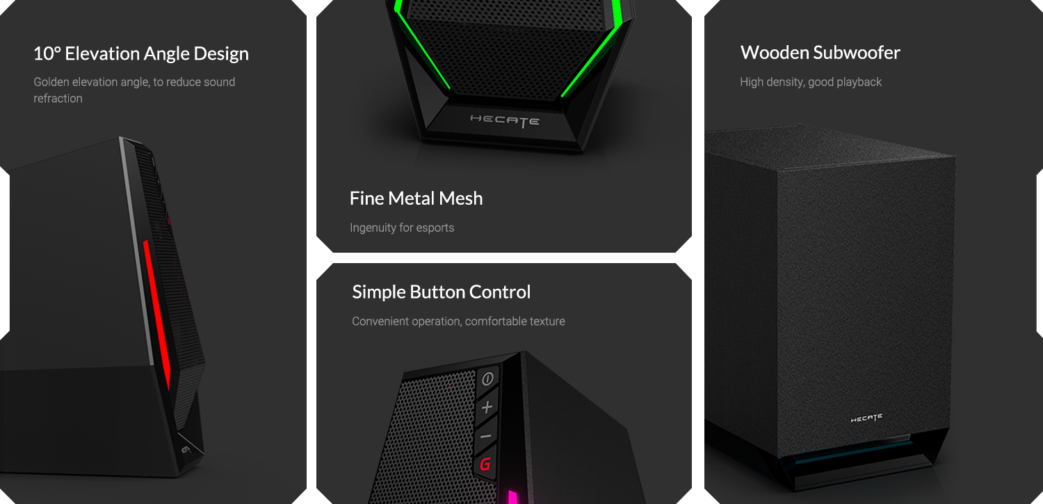 L'esthétique e-sport du G1500 MAX incarne un style cyberpunk futuriste, caractérisé par des lignes minimalistes qui définissent le boîtier Sci&Tech. Les haut-parleurs hexagonaux en forme de « Big Arm », logés dans des caissons en bois, évoquent une sensation de superproduction.
