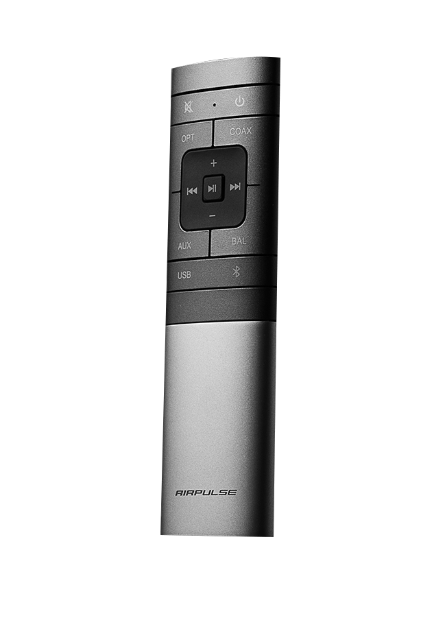 La paire d'enceintes comprend une télécommande sans fil qui vous permet de basculer entre les entrées, de régler le volume et de désactiver vos enceintes à distance.