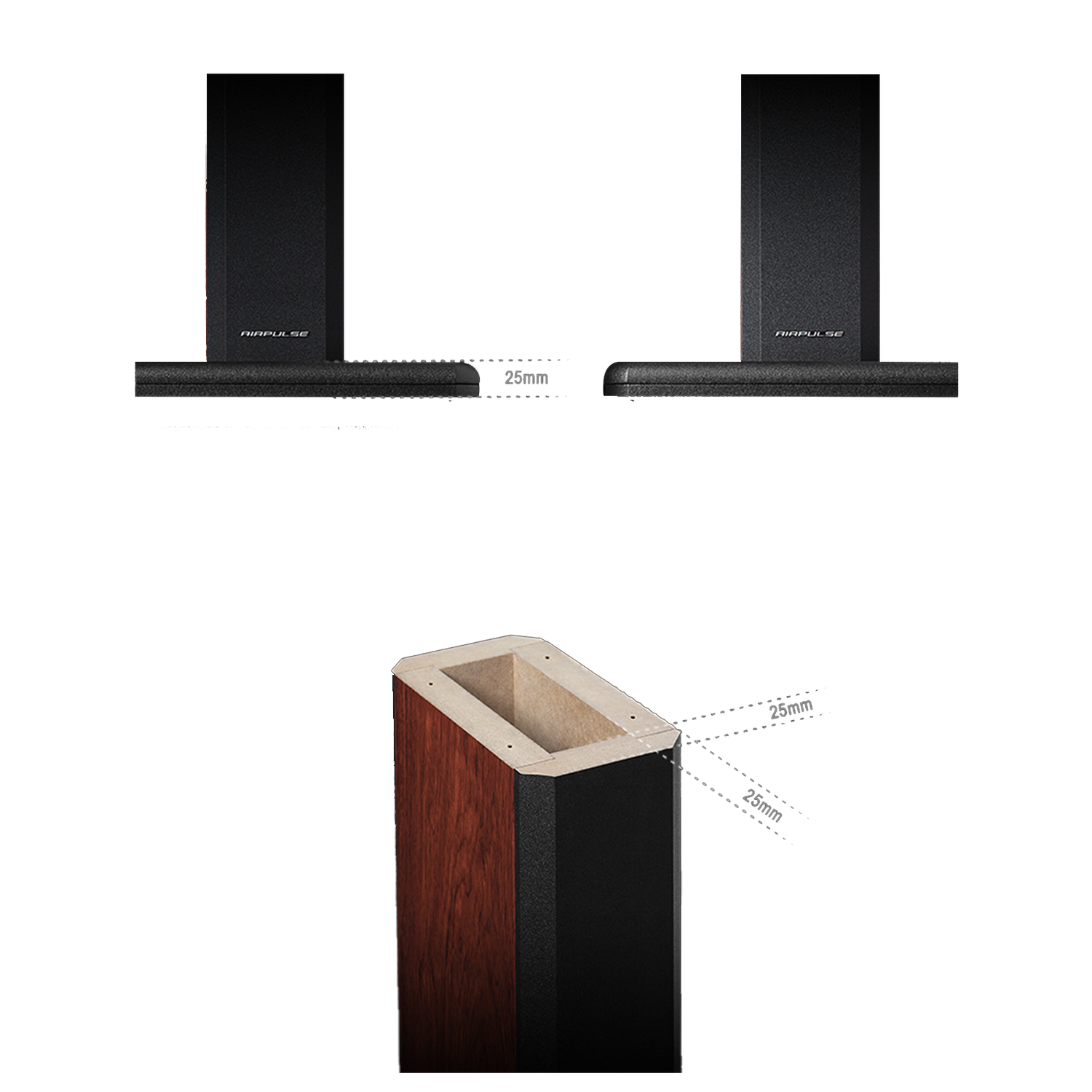 Conçu pour être une extension visuelle de l'A200, la finition couleur et la forme de la partie avant des colonnes du support sont les mêmes que celles du déflecteur avant de l'enceinte. Les panneaux latéraux des colonnes du support utilisent également une finition en grain de bois conforme à celle de l'A200 pour correspondre à l'enceinte.