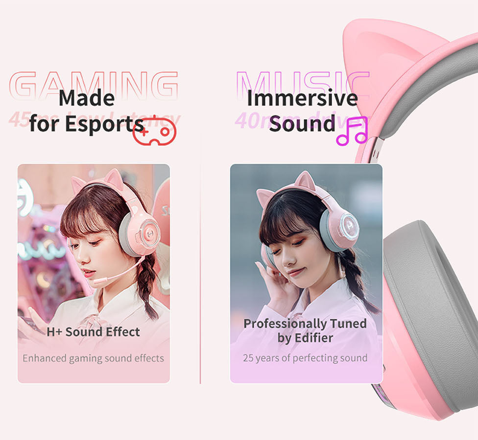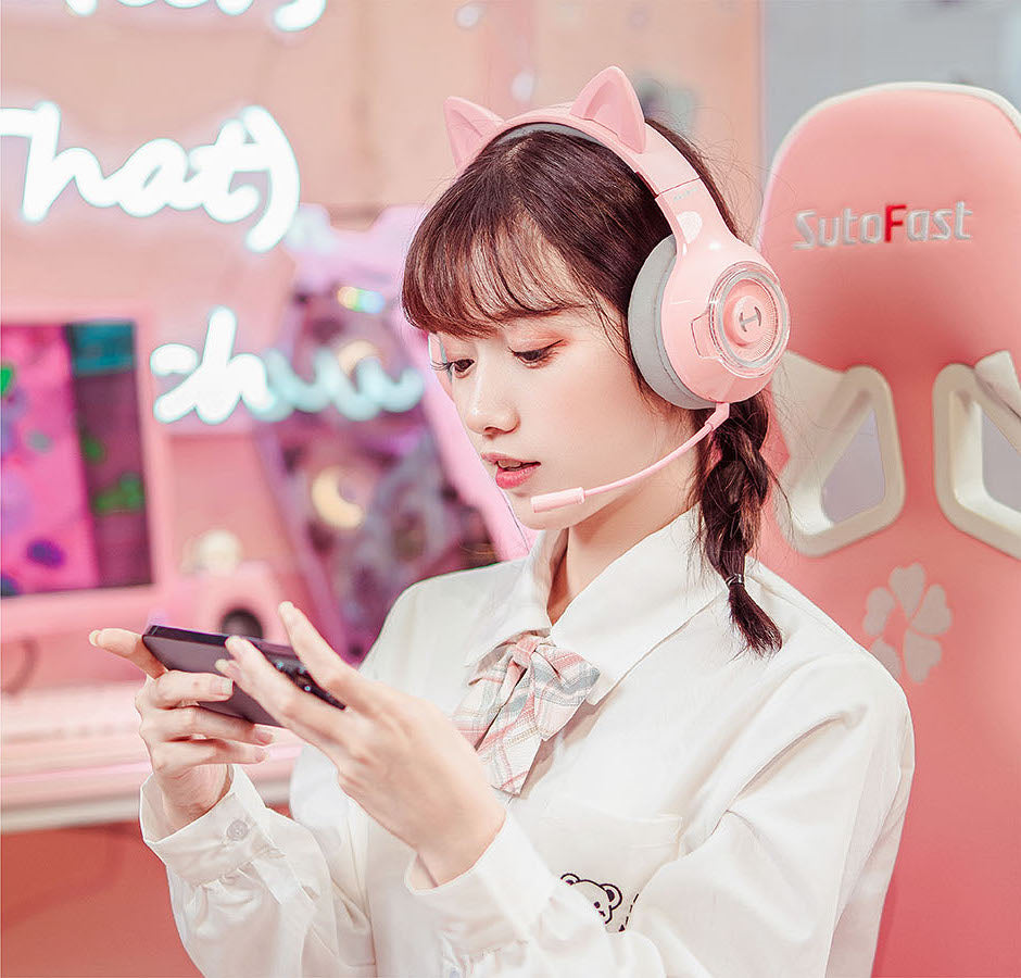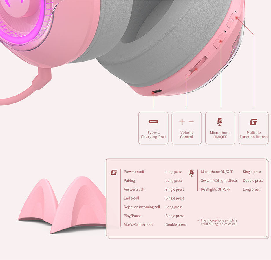 Effets d'éclairage RVB assortis au design tendance en forme d'oreille de chat.