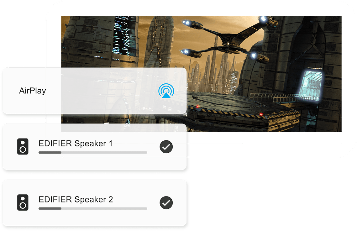 Vous aimez que votre musique soit diffusée sur plusieurs haut-parleurs ? Appuyez simplement sur chaque haut-parleur Wi-Fi Edifier pour les activer et régler le volume à votre guise.