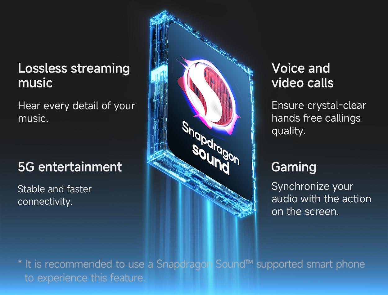 Construit avec les SoC audio Bluetooth® Qualcomm® QCC5181, le S5 prend en charge la suite technologique Snapdragon Sound pour offrir une expérience audio haut de gamme et immersive.