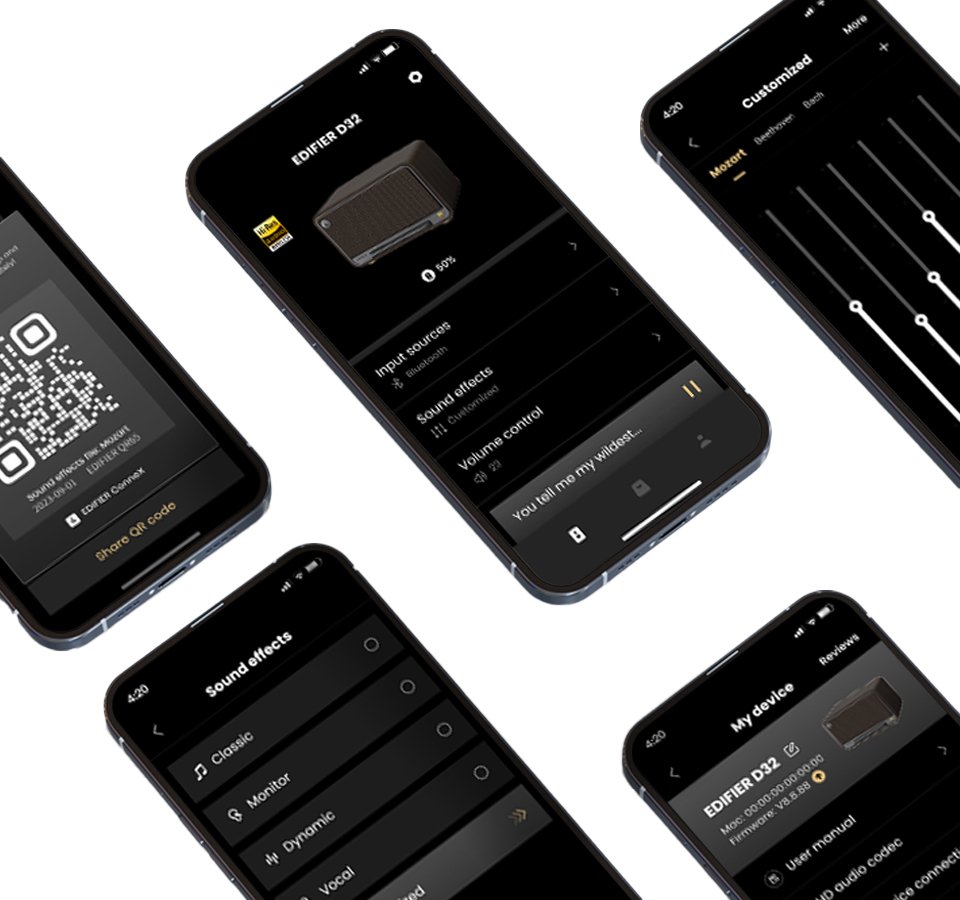 L'enceinte D32 collabore avec l'application EDIFIER ConneX, vous permettant d'accéder à des fonctions supplémentaires en téléchargeant l'application