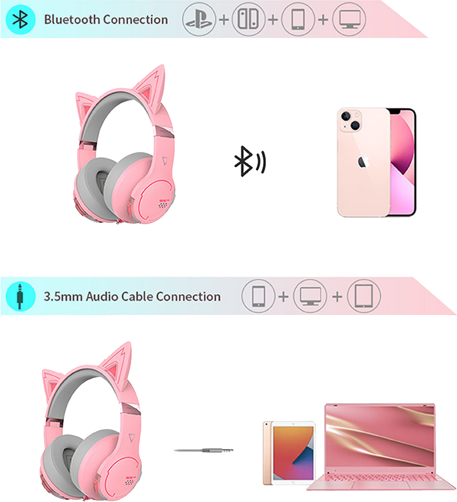 Une seule charge peut vous offrir 36 heures de lecture avec les lumières éteintes. Ce casque à oreilles de chat le rend idéal pour les longues sessions de jeu ou pour les longs voyages.