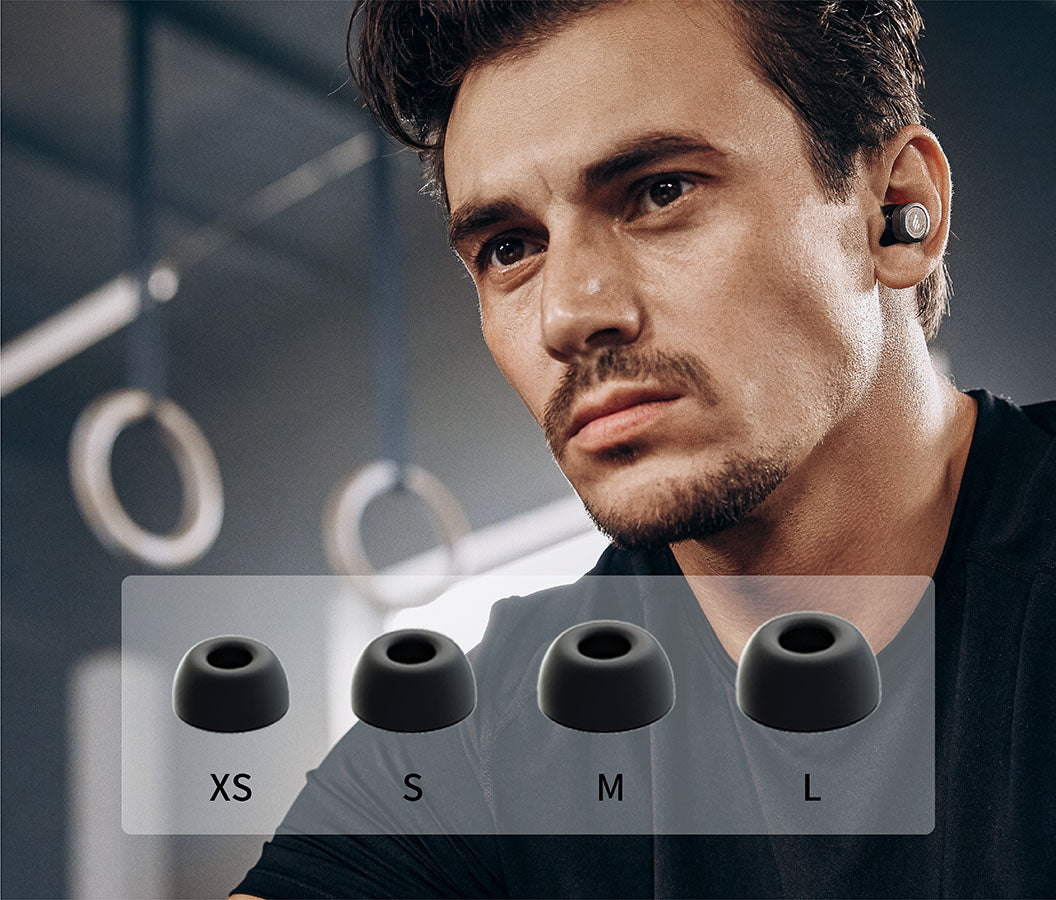 4 tailles différentes d'embouts sont incluses pour s'adapter à différentes formes d'oreilles pour un ajustement sûr et stable.