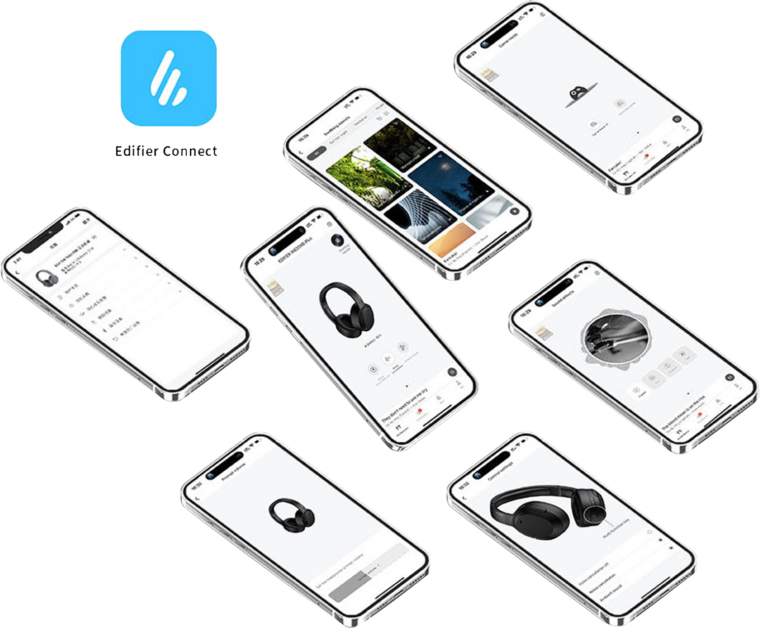 L'application Edifier Connect offre une large gamme d'options musicales et vous permet de personnaliser votre expérience d'écoute. Vous pouvez personnaliser les paramètres tels que l'affichage de la puissance, la sélection de l'égaliseur, la minuterie d'arrêt, le volume rapide et les sons apaisants à votre guise.