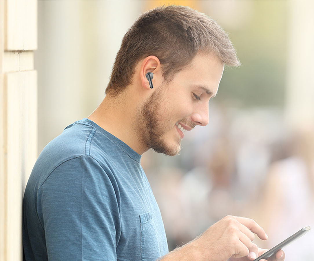 Conception ergonomique semi-intra-auriculaire pour s'adapter à la courbe de l'oreille. Un seul écouteur pèse environ 3,4 g, petit et léger. Non seulement confortable, mais aussi confortable et sécurisé.