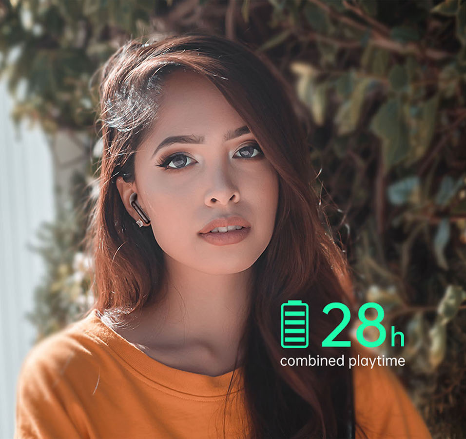 7h d'autonomie par charge, jusqu'à 28h avec étui de chargement. Pratique pour une utilisation toute la journée avec de la musique ininterrompue.