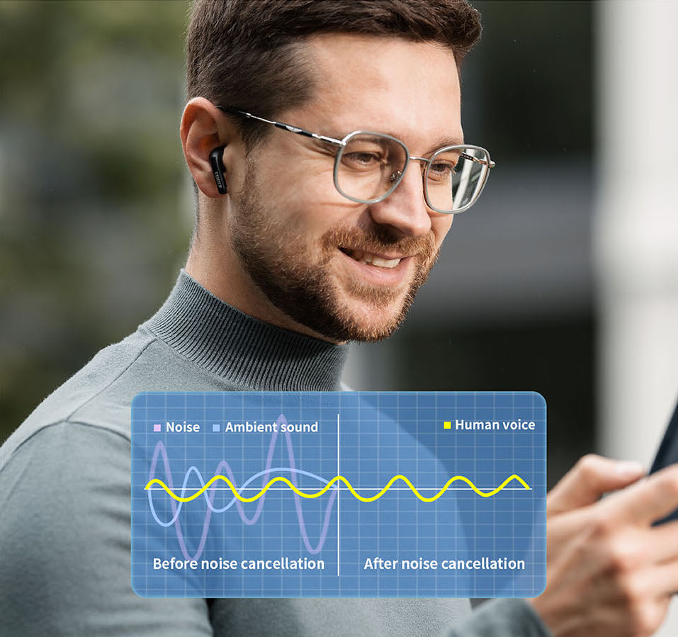 Grâce à l'algorithme avancé de nouvelle génération, ces véritables écouteurs sans fil excellent dans divers scénarios en minimisant efficacement le bruit ambiant, en amplifiant la voix humaine et en offrant une clarté et une fidélité sonore exceptionnelles. Bénéficiez de conversations téléphoniques ininterrompues et d'une clarté cristalline, même au milieu d'un environnement bruyant.