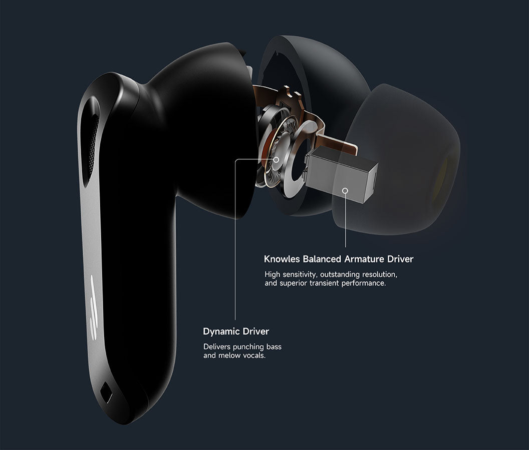 Avec un traitement du signal numérique et un croisement actif qui filtre le signal audio en fréquences hautes et moyennes-basses, NeoBuds Pro 2 équilibre toutes les fréquences tout en conservant des détails précis et en présentant une qualité sonore riche.
