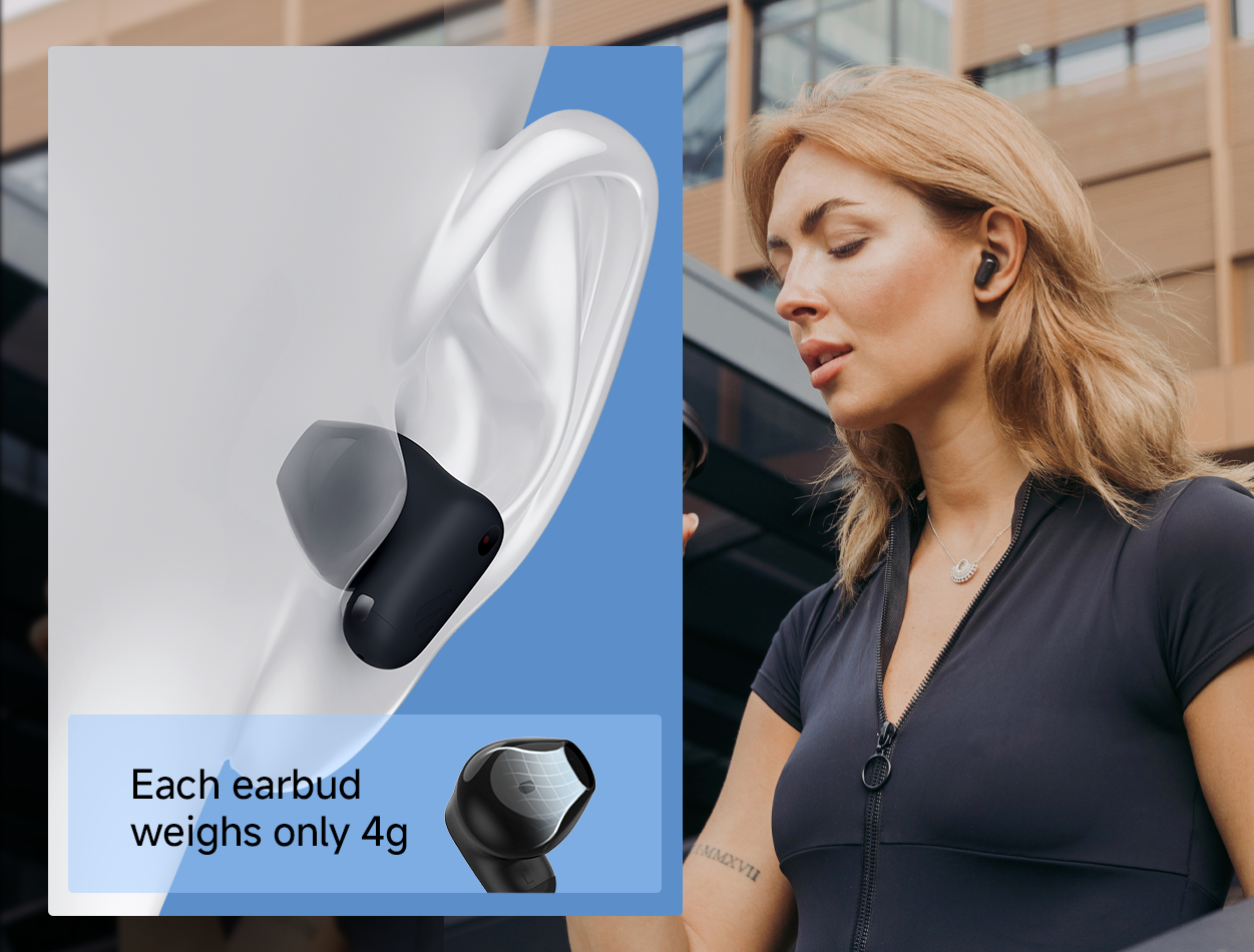 La conception ergonomique incurvée en forme de U s'adapte parfaitement, offrant une excellente expérience d'écoute tout en réduisant la pression sur le conduit auditif pour un confort ultime.