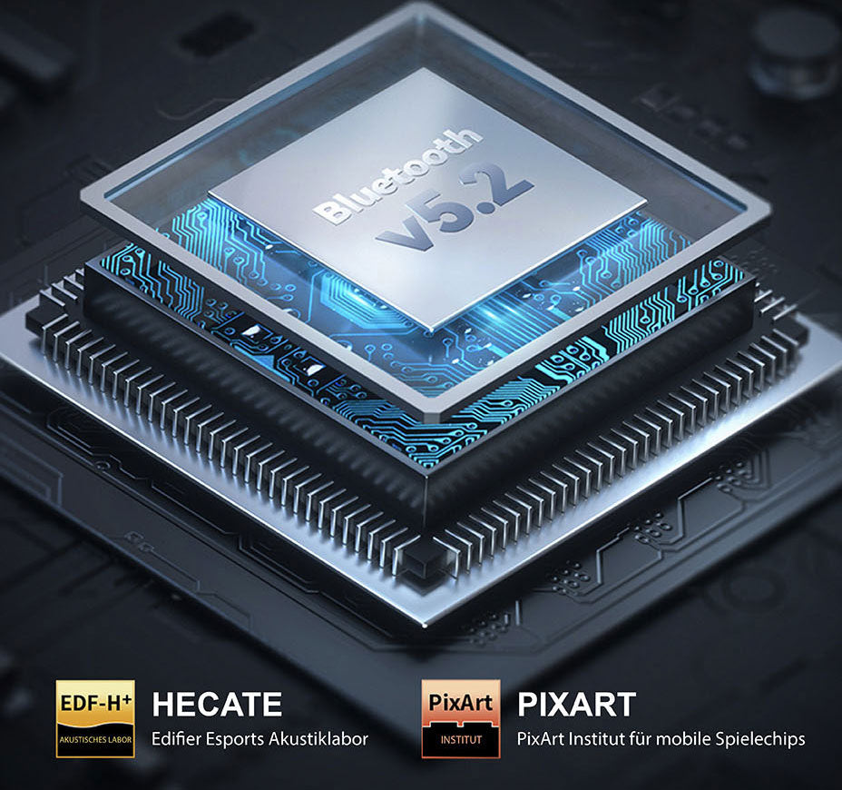 HECATE Edifier E-sports Acoustics Lab partners with PixArt to enhance gaming experiences. Leveraging Bluetooth V5.2 and PixArt's low-latency mobile game chip, it elevates wireless gaming performance. This collaboration cater specifically to esports enthusiasts. ensuring seamless and professional.