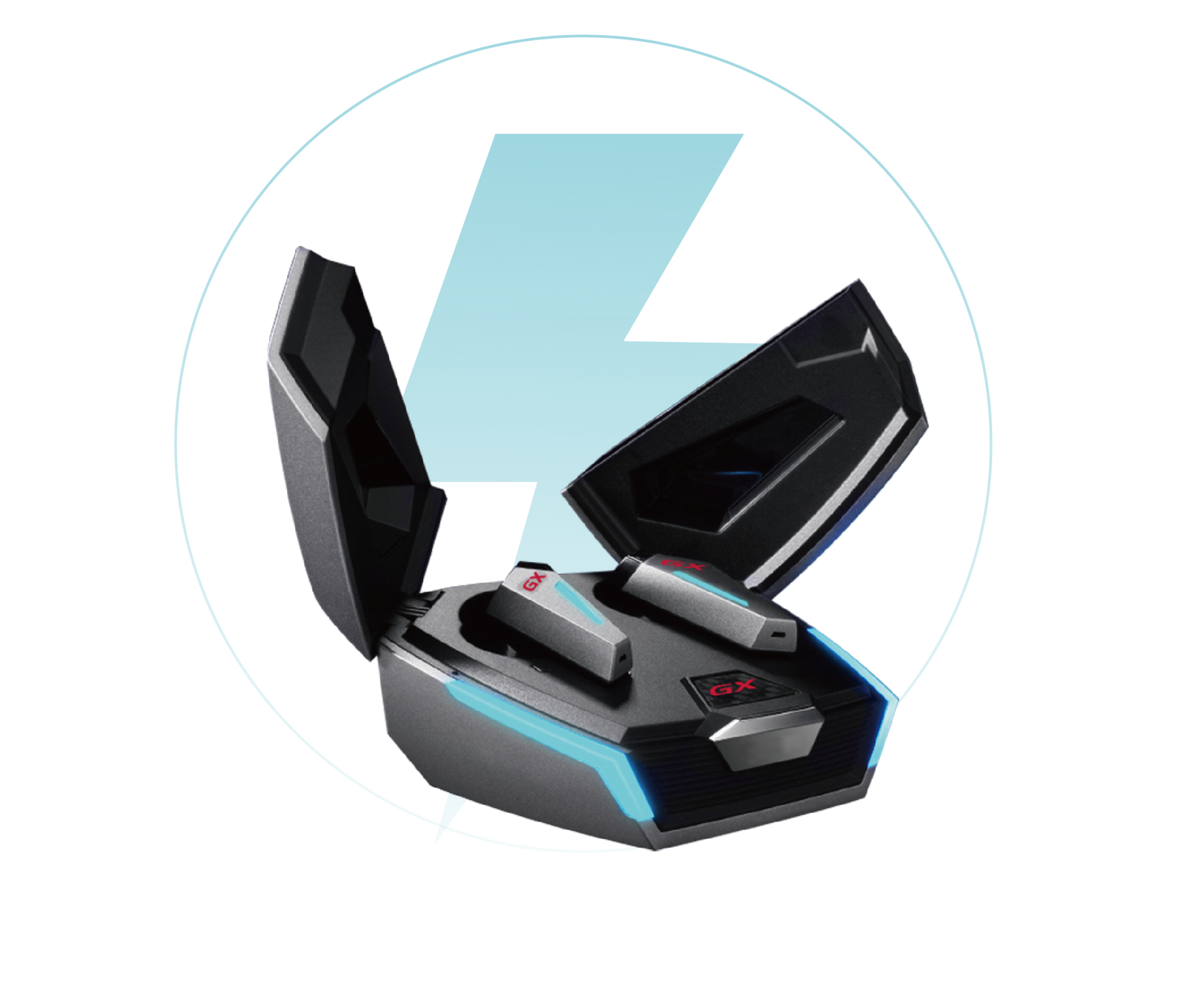 Adopts poison fang design incorporating RGB colourful breathing lighting, the GX07 delivers the soul of a cyberpunk. The design of the GX07 charging case is inspired by the wing doors of the super GT. When you open the charging case, the RGB light will turn on automatically and alternately to attract everyone's attention.