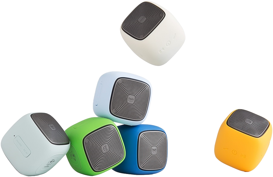 These portable speakers are designed to cubic perfection. Simple to hold with no hard edges making them perfectly safe.